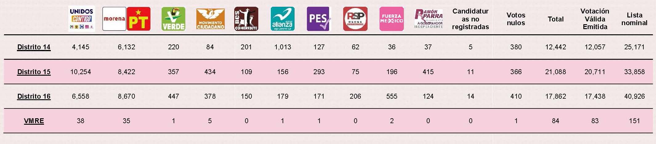 V.3. COMPUTOS DISTRITALES Y RESULTADOS PARA LA ELECCIÓN DE LA GUBERNATURA