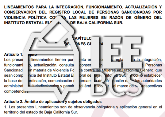 Lineamientos para la integración, funcionamiento, actualización y conservación del registro local de personas sancionadas por violencia política contra las mujeres en razón de género del Instituto Estatal Electoral de Baja California Sur.