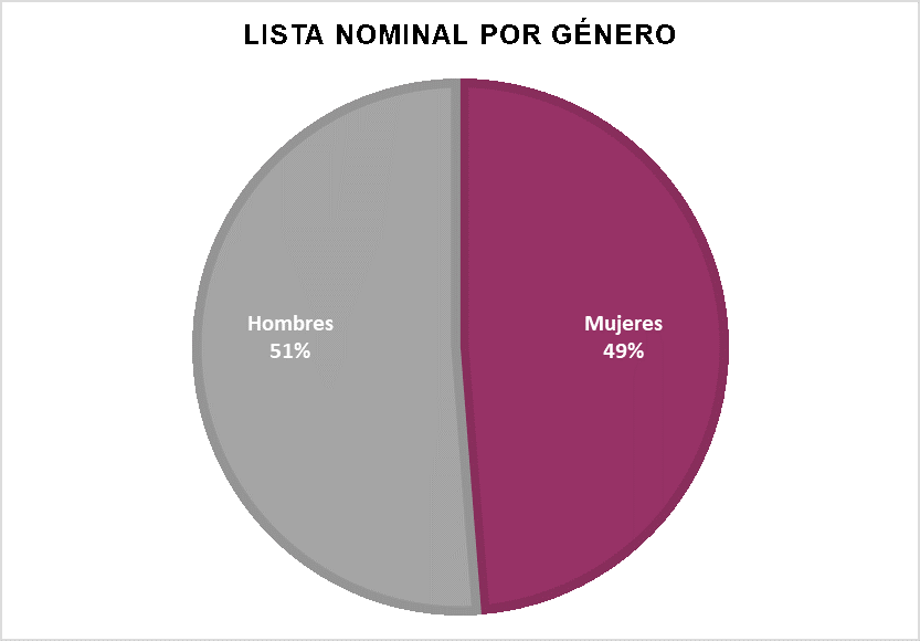 A continuación, se muestra la integración de la lista nominal por género a nivel estatal, incluyendo a los residentes en el extranjero.