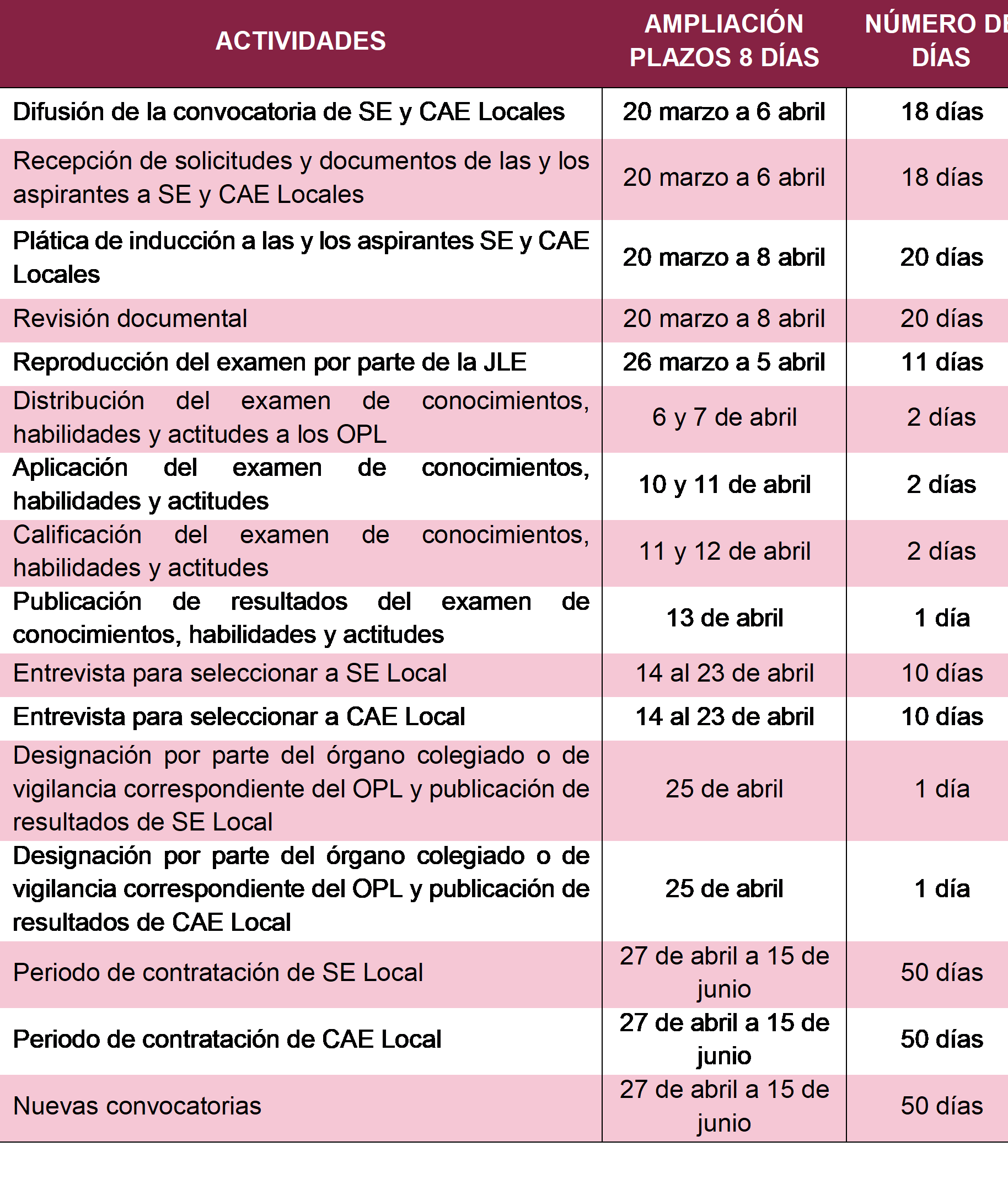✓En este tenor, se hizo de conocimiento mediante la Circular INE/DECEyEC/007/2021 la extensión de plazos de las actividades de reclutamiento y selección de las figuras locales mencionadas hasta el día 6 de abril, por lo que se actualizaron los materiales con las nuevas fechas, se continuó la difusión, así como con la atención a la ciudadanía interesada en participar en esta actividad.