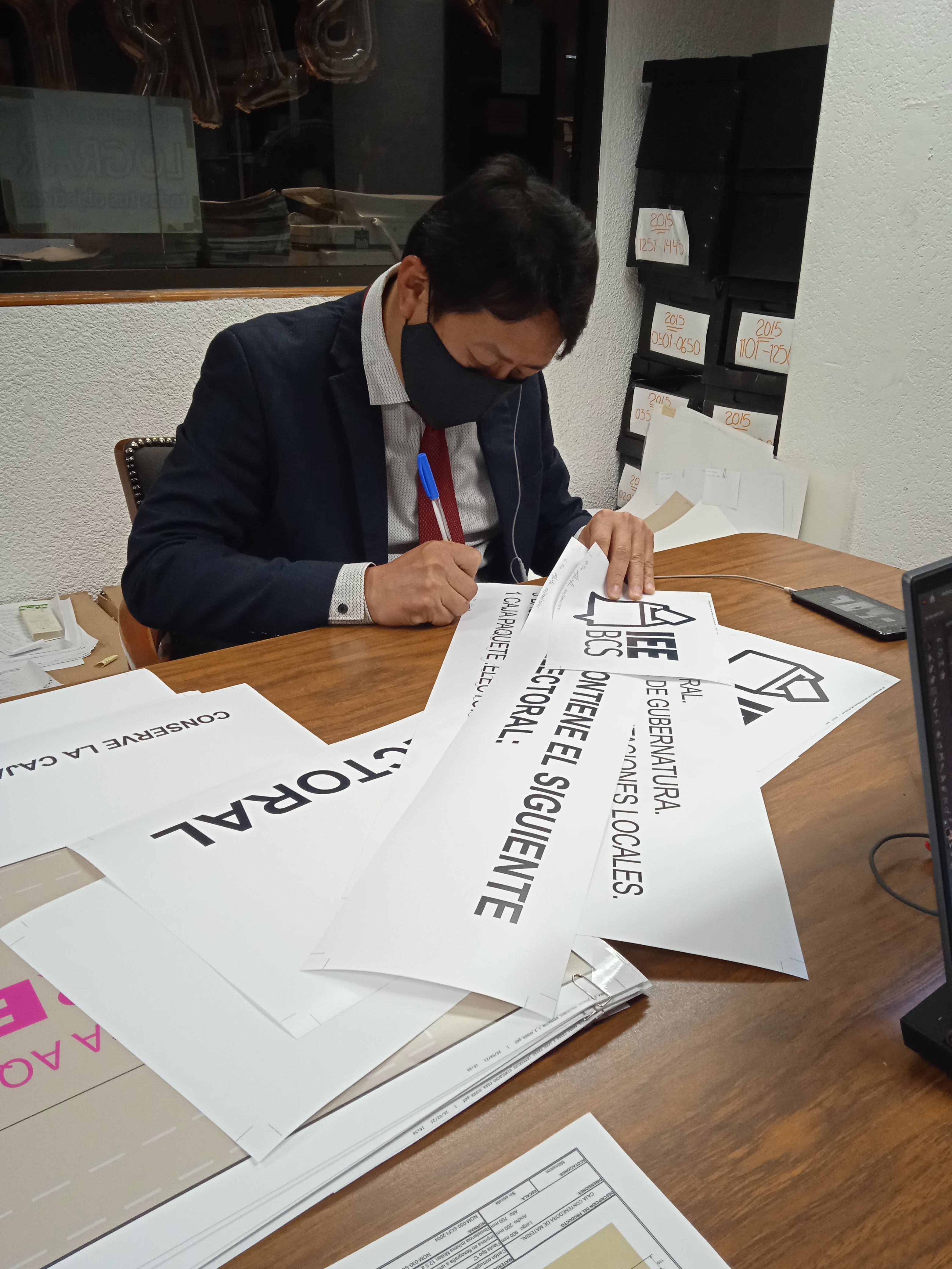 Mientras que, los trabajos desarrollados en la segunda etapa, se orientaron a la producción de la documentación con emblemas y boletas electorales de las tres elecciones previstas para celebrarse en el proceso electoral de referencia, es decir: las elecciones a la Gubernatura del Estado, la de Diputaciones Locales y la de Integrantes de Ayuntamiento, tanto para celebrar la votación en el territorio de la entidad, así como la del voto de las y los sudcalifornianos residentes en el extranjero, ésta para la elección para la Gubernatura.