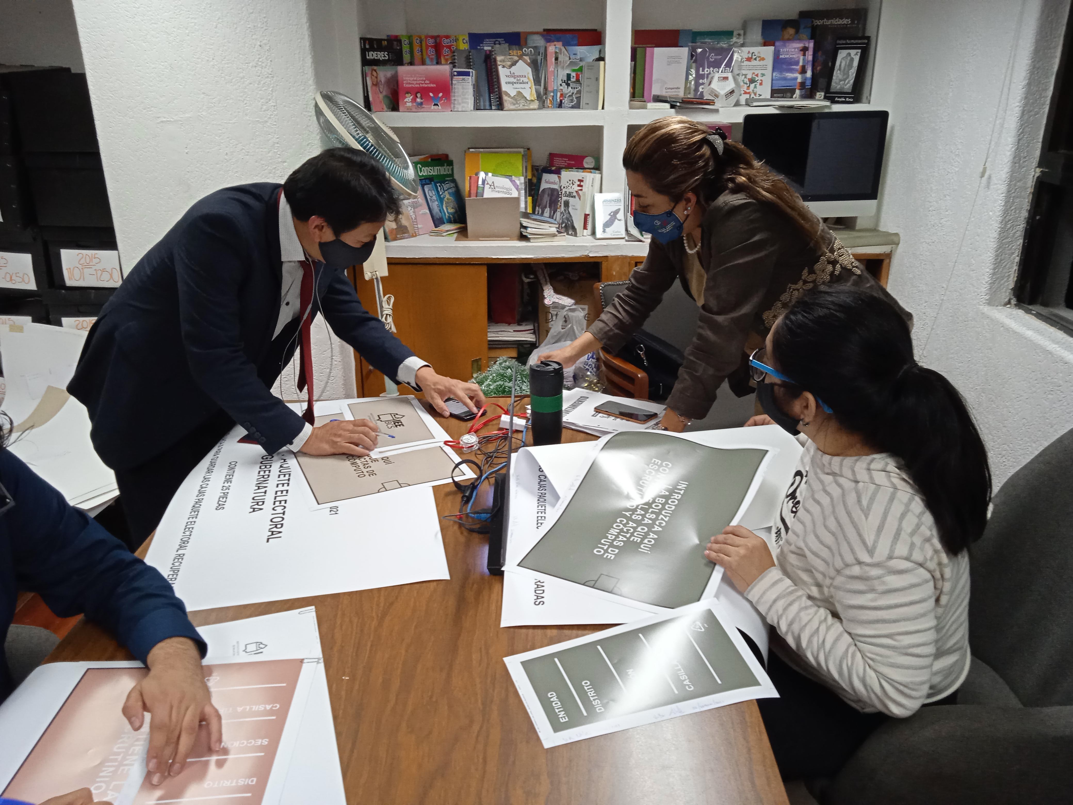 La producción se organizó en dos etapas. La primera, se destinó a la producción de la documentación sin emblemas y los materiales electorales.