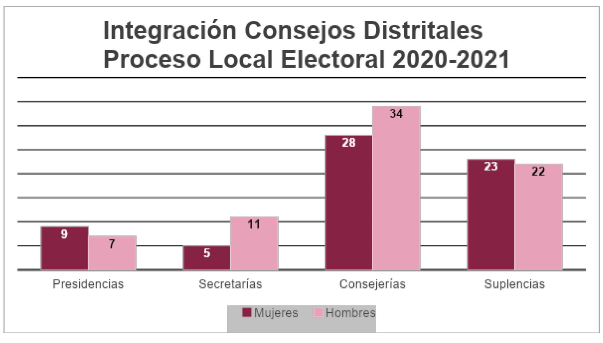 En atención a lo dispuesto en el artículo 22, numeral 1, inciso a) del Reglamento de Elecciones, el cual establece que se deberá observar la paridad de género en la integración de los órganos desconcentrados, las consejeras y consejeros del Consejo General, atendiendo al número de aspirantes de ambos sexos que se registraron y acreditaron todas y cada una de las etapas del procedimiento, y tras un extenso análisis, procedieron a realizar la integración de los 21 órganos desconcentrados del Instituto.