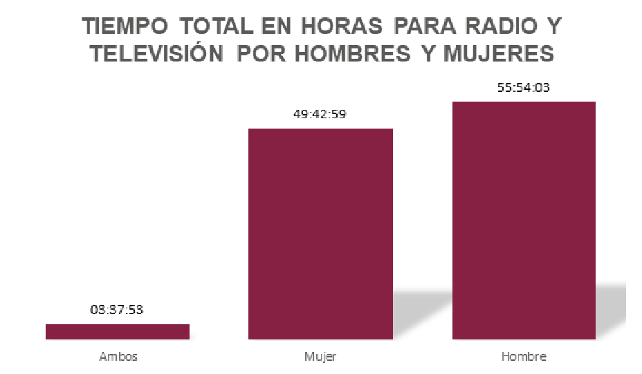 Se registraron 109 horas, 14 minutos, y 55 segundos en total, de las cuales, para mujeres fueron 49 horas, 42 minutos. 59 segundos, y para hombres fueron 55 horas, 54 minutos, 03 segundos, y para ambos, se registró un total de 3 horas, 37 minutos y 53 segundos.