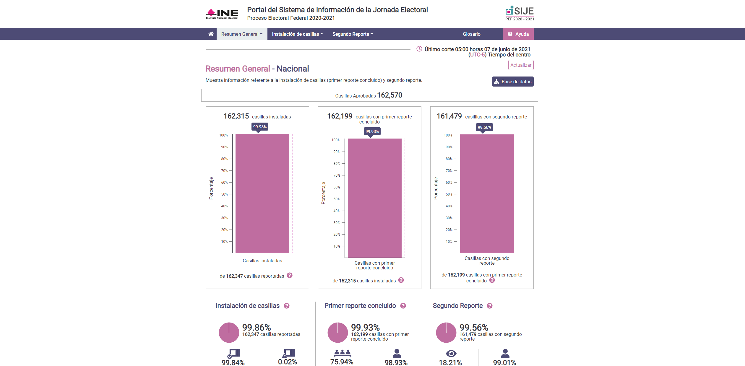 Durante la Jornada Electoral del día 6 de junio de 2021, el Instituto Nacional Electoral (INE) puso en marcha el sistema informático denominado "Sistema de Información de la Jornada Electoral (SIJE)", en el cual se puede consultar el avance en la instalación de las casillas electorales, su respectiva integración y el reporte de los incidentes que se pueden presentar durante la jornada.