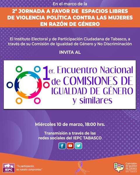 El 10 de marzo del 2021, se llevó a cabo el Primer Encuentro Nacional de Comisiones de Igualdad de género, organizado por el OPLE de Tabasco, en el cual se contó con la participación de la Mtra. Alma Alicia Ávila Flores, quien era la Consejera Presidenta de la CIGND en ese momento.