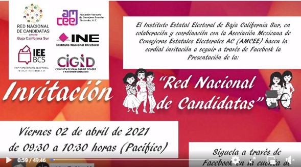 El primero de abril del 2021, El IEEBCS en colaboración con la Asociación Mexicana de Consejeras Estatales Electorales AC, por medio de redes sociales presentaron “Red Nacional de Candidatas”