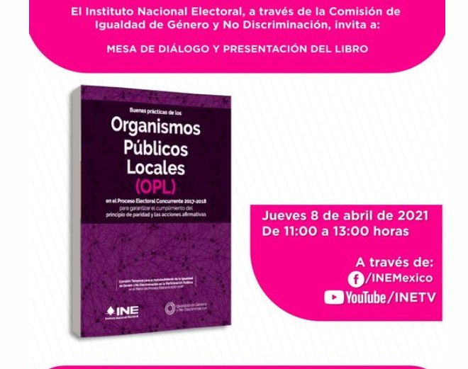 El 8 de abril del 2020, por parte del INE a través de la Comisión de Igualdad de género y no Discriminación, se presentó el libro “Buenas prácticas de los Organismos Públicos Locales en el Proceso Local Electoral Concurrente 2017-2018 para garantizar el cumplimiento del principio de paridad y las acciones afirmativas”.
